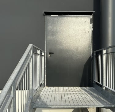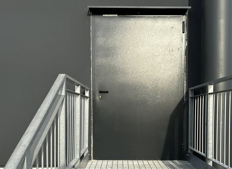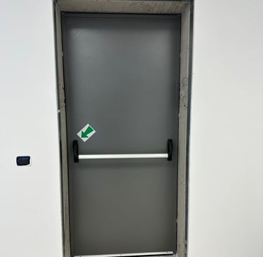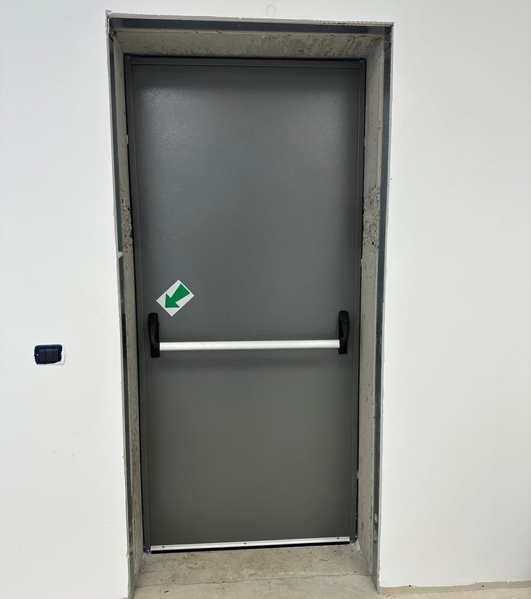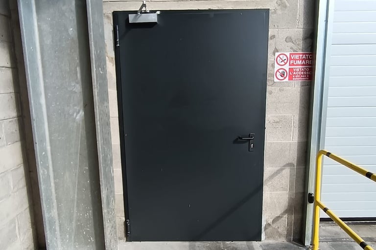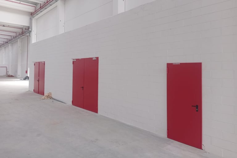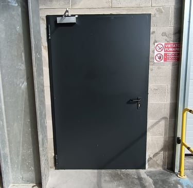 Our pedestrian doors are designed to meet diverse needs in industrial and commercial environments. Available in both multipurpose and emergency exit versions, these doors provide maximum safety and functionality. Perfect for installation around warehouses or commercial facilities, they are commonly used as fire exits or to separate internal spaces, such as offices from production areas.