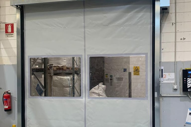 Il portone ad avvolgimento rapido in telo PVC, privo di tubi e cinghie, rappresenta la scelta ideale per chi cerca efficienza e un design compatto.