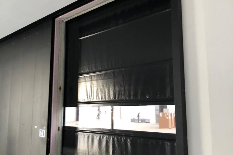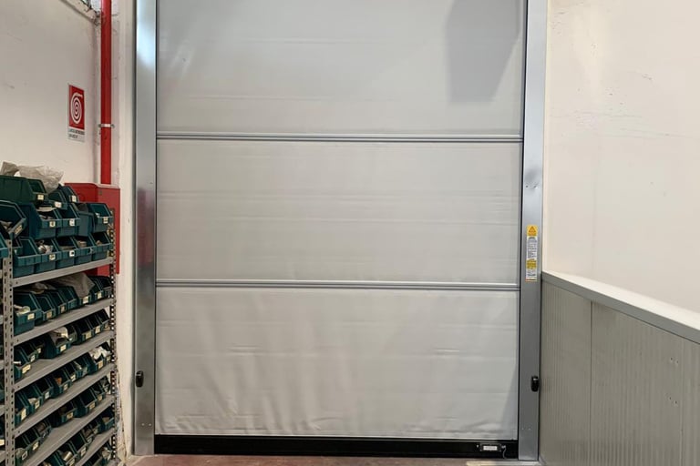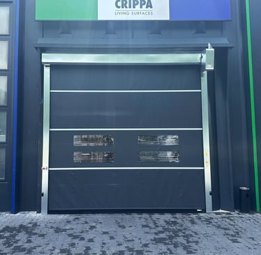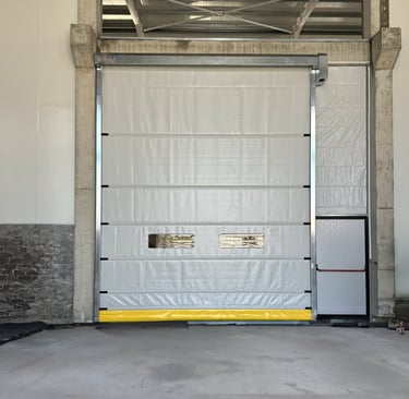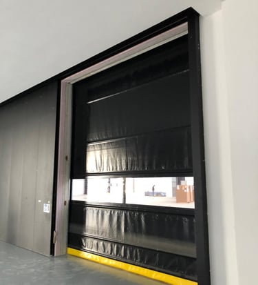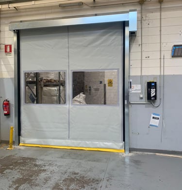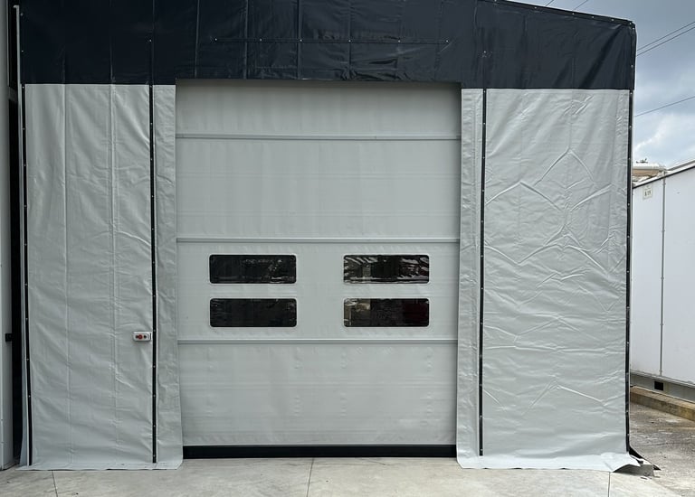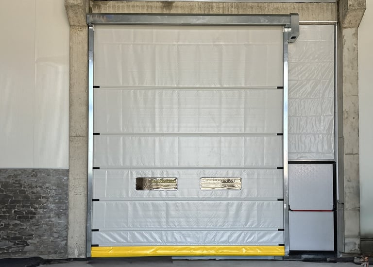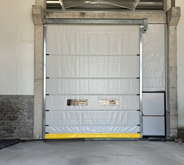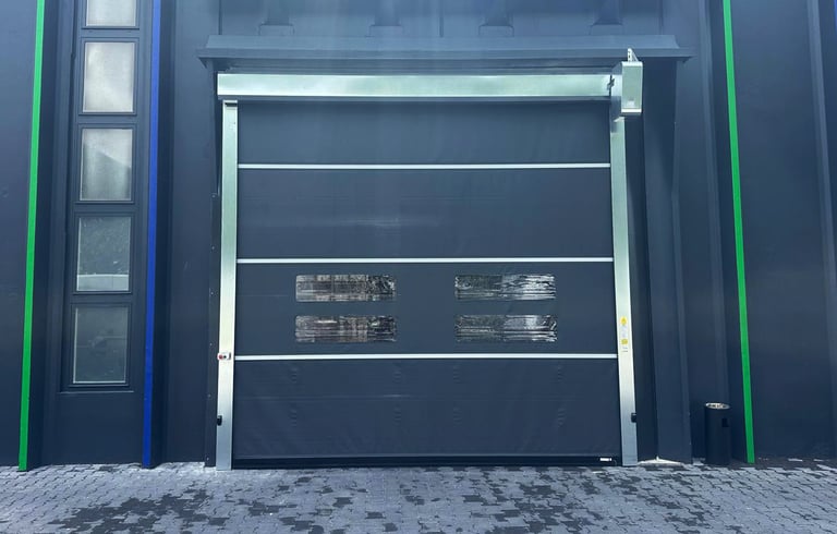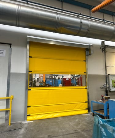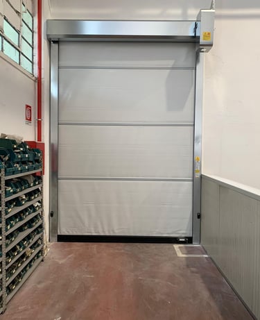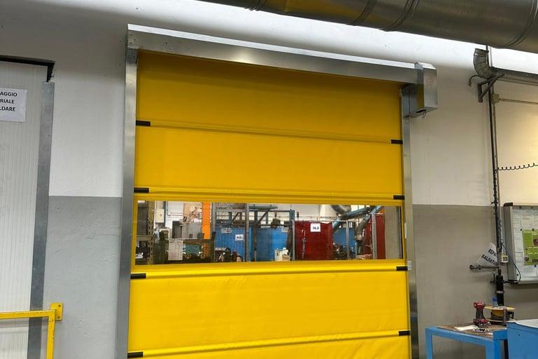 Il portone ad avvolgimento rapido in telo PVC, privo di tubi e cinghie, rappresenta la scelta ideale per chi cerca efficienza e un design compatto.