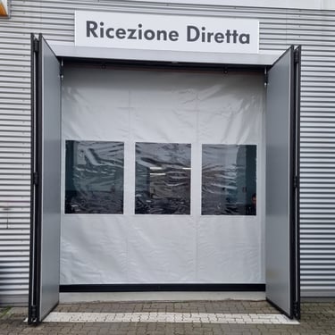 È particolarmente efficace se utilizzato in combinazione con portoni rigidi, permettendo aperture ripetute durante la giornata. Alla fine della giornata lavorativa, è possibile chiudere con un portone a manto rigido, ottimizzando così la sicurezza degli ambienti.